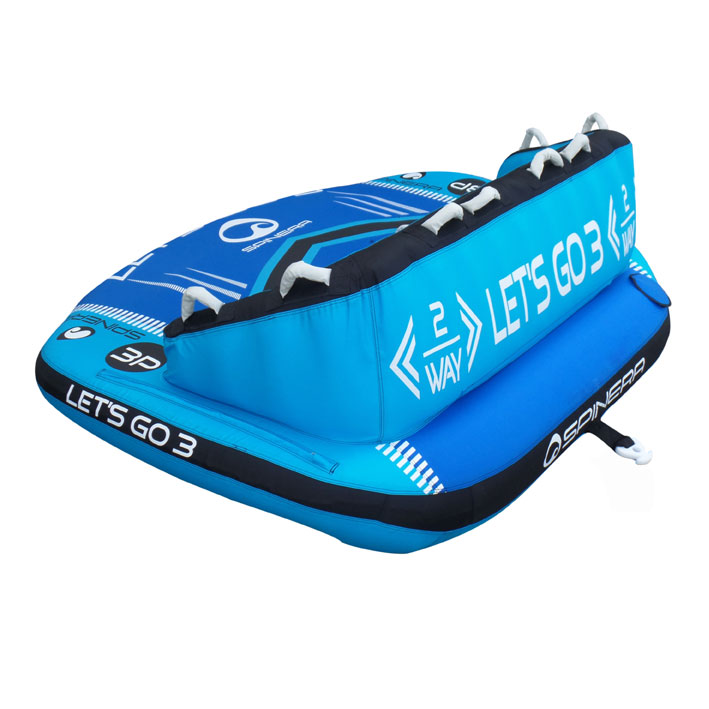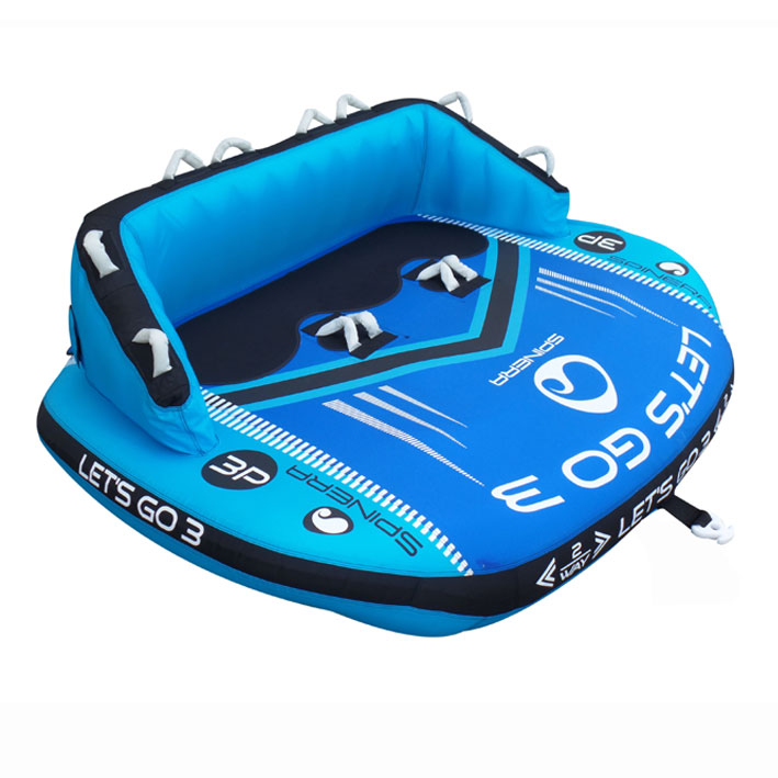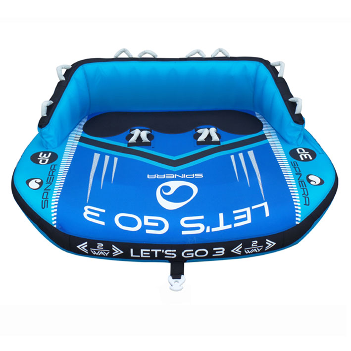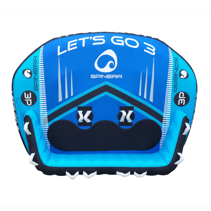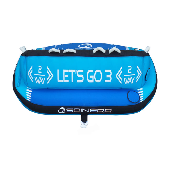 Буксируемый баллон Spinera Let’s Go 3 можно тянуть с любого конца. Разработанный для трех человек, баллон доставит вам и вашим друзьям в два раза больше удовольствия, чем обычная ватрушка. Прокатитесь на Let’s Go 3 как на римской колеснице или переверните его, откиньтесь на спинку кресла и расслабьтесь (или держитесь крепче, в зависимости от пилота вашего катера). Независимо от того, решите ли вы кататься на скорости по волнам, пристегнув баллон к лодке любой из сторон, либо просто полежать и расслабиться в солнечный день на озере, вы не ошибетесь с выбором!