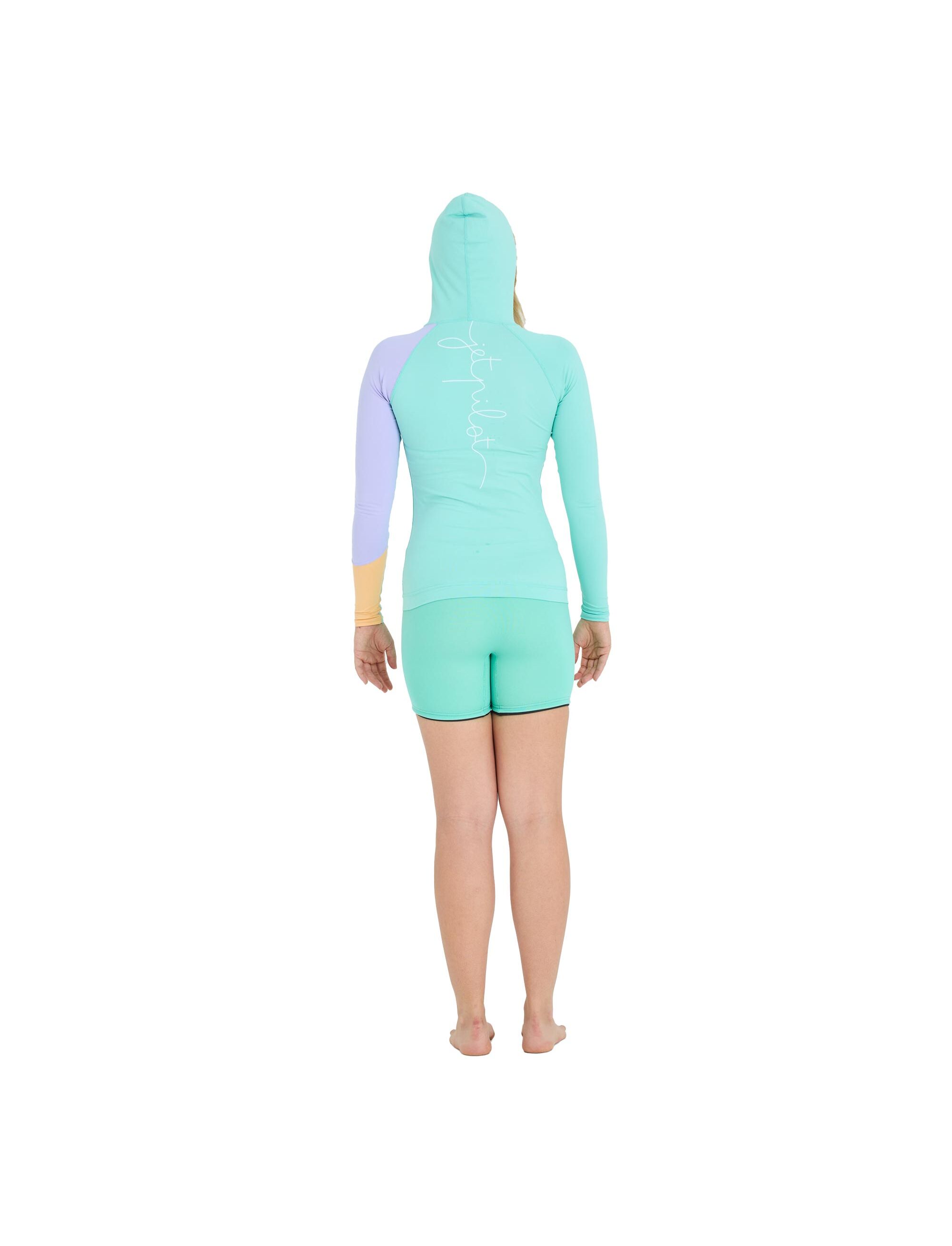 Гидромайка женская длинный рукав на молнии с капюшоном Jetpilot PACER LS HOODED RASHIE TEAL