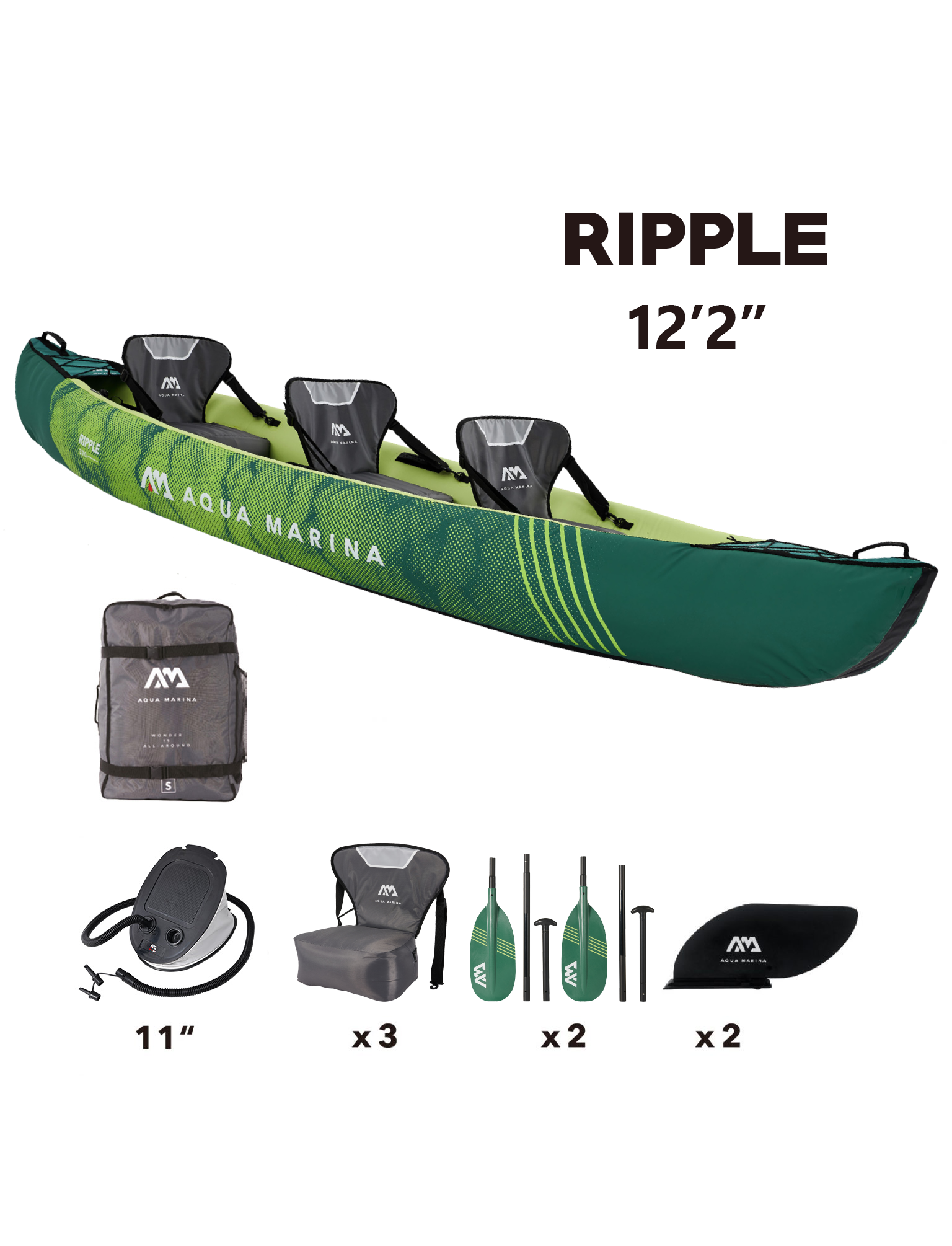 Совершенно новая модель RIPPLE – этот каяк рассчитан для отдыха двух или трех человек, специально разработанное с увеличенной вместимостью снаряжения и увеличенной грузоподъемностью для семейных прогулок по воде, перевозящих все необходимое. Это надувное каноэ с ультра-комфортабельным палубным полом и большой зоной для подогрева является сверхустойчивым и позволит вам чувствовать себя в безопасности на воде.