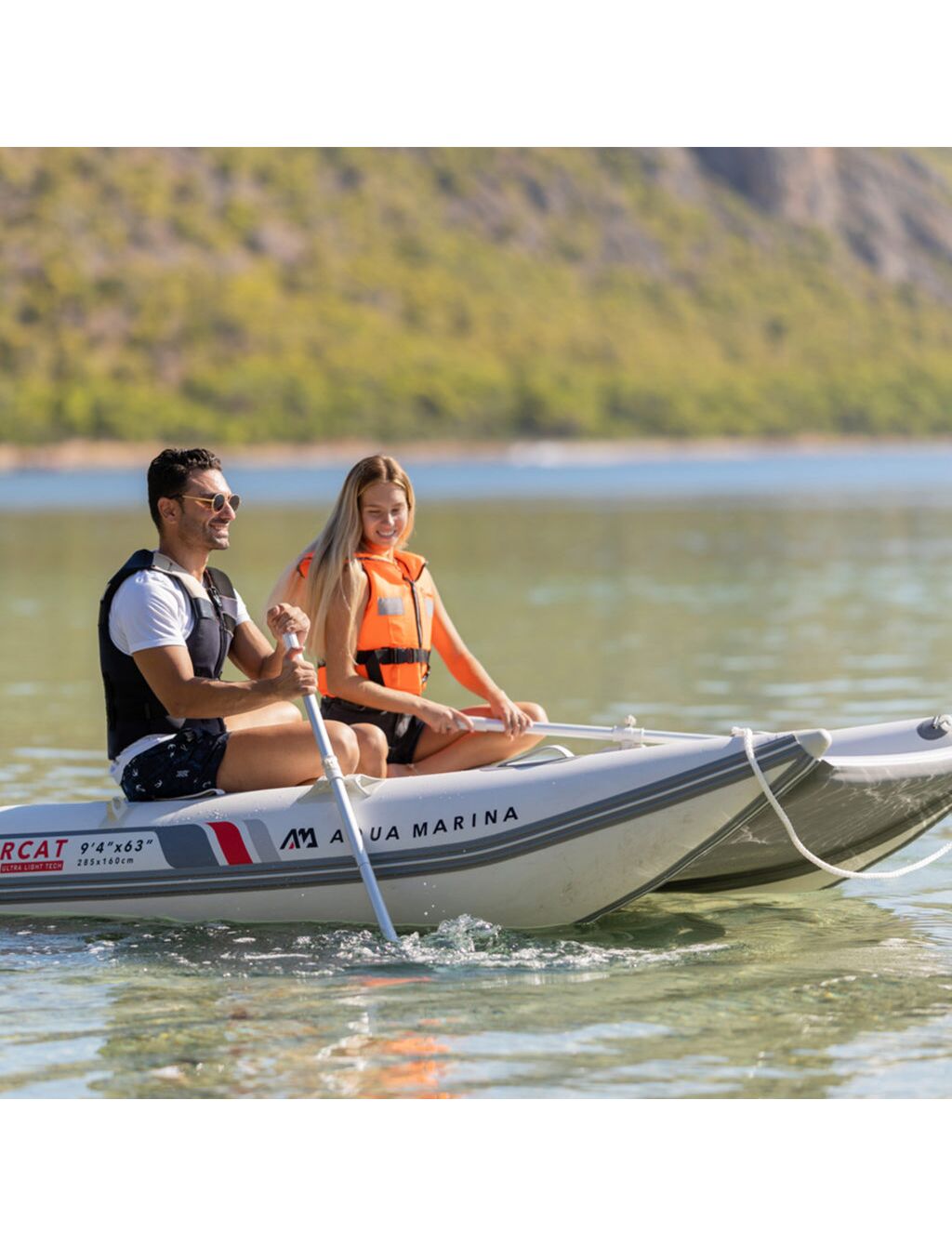 Созданный на основе фирменной технологии Aqua Marina высокочастотной сврки ПВХ в сочетании с технологией Drop Stitch Light (камера высокого давления), катамаран AIRCAT создан, чтобы быть безопасным, жёстким, сверхстабильным, но при этом сверхлегким. Прошли те времена, когда требовался специальный прицеп для лодки. Теперь просто упакуйте его в сумку для транспортировки вместе со всеми аксессуарами, и он поместится на заднем сиденье автомобиля. Наш новый AIRCAT станет гарантией веселого и расслабленного дня!
